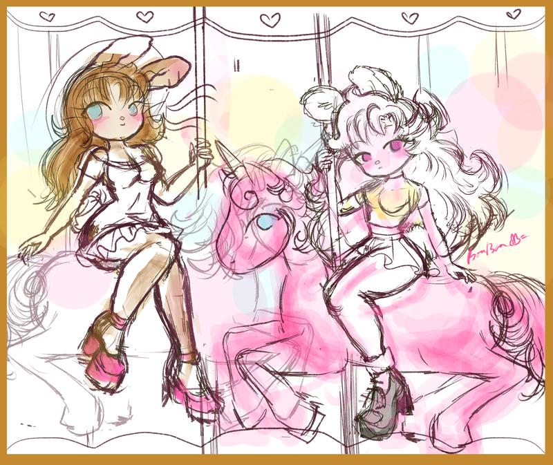I am currently brainstorming a drawing for the year of horse. I ended up creating a couple of OCs, they’re characters loosely based on myself, my sisters, my girlfriends with big sister personalities. This drawing will be quite challenging for me. I think drawing carousel horses is a perfect way to get into the spirit. At the moment, I am in the process of finding which stylized designs feels best to draw. The pseudo Blythe body proportion is growing on to me. If my drawing turns out super wonky-- that's okay, at least I'm exercising my brain to do something new!